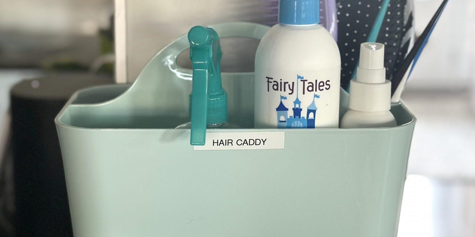 This little caddy might not solve all the problems but it’s a good start. It has everything I need to do Lydia and Caden’s hair. It’s portable so I can pick it up and go anywhere…